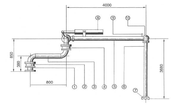 ?。?)水平回轉(zhuǎn)器 (9)放空閥 (5)升降臂 (10)頭部回轉(zhuǎn)器