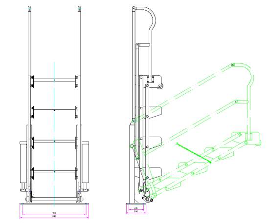2、HQB60-1400(四踏步HQB60-4)伸出長度L=1400mm跳板寬度600mm,較大高度H=2240mm。