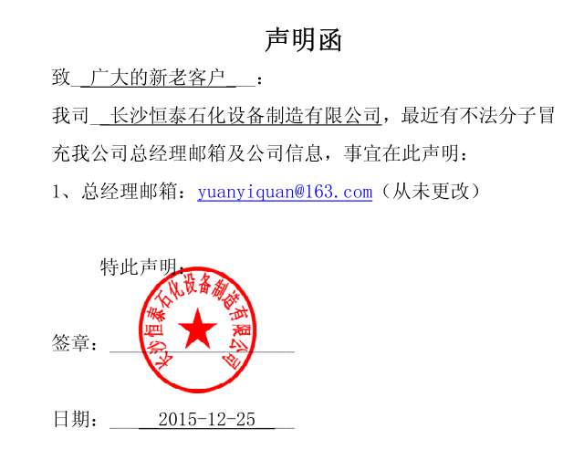 長(zhǎng)沙恒泰石化設(shè)備制造有限公司
